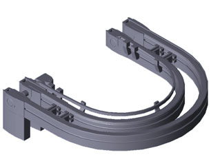 – 彎道模塊自帶驅動裝置。電機安裝在右側 (MA = R),左側(MA = L),軌道寬度 bT 從 240 mm起,也可以安裝在中間 (MA = M)。